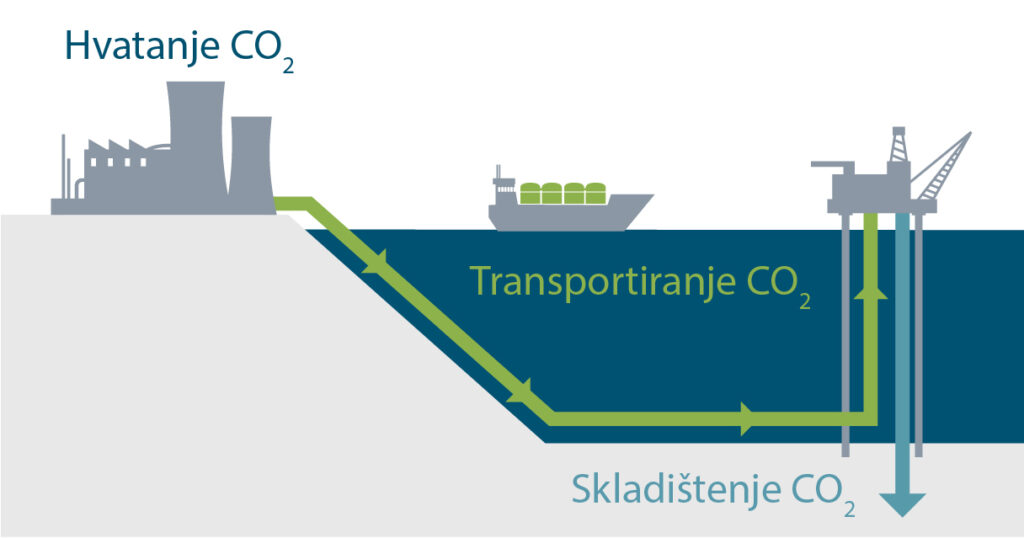 CCS (Carbon Capture and Storage) je tehnologija i proces koji se koristi za hvatanje emisija ugljičnog dioksida (CO2) iz industrijskih postrojenja i energetskih izvora, zatim transportira CO2 na odgovarajuće lokacije i pohranjuje ga na siguran i trajan način kako bi se spriječilo njegovo oslobađanje u atmosferu. U pravilu, ova tehnologija obuhvaća tri ključna koraka, a to su hvatanje (Capture) CO2 iz atmosfere, transport (Transport) i pohranjivanje (Storage).