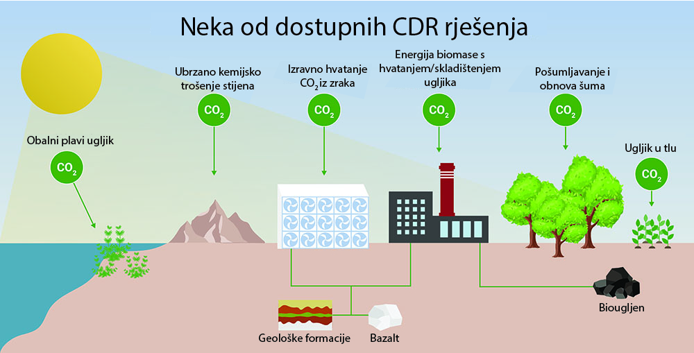 Prije svega potrebno je podsjetiti na terminologiju. CCS nije uklanjanje ugljičnog dioksida, kao CDR. CCS je odvajanje i trajno skladištenje ugljičnog dioksida iz industrija, dok CDR uklanja ugljični dioksid iz atmosfere i trajno ga skladišti. Tako se, u najboljem slučaju, CCS-om postiže ugljična neutralnost, dok CDR dobodi do negativnih emisija.